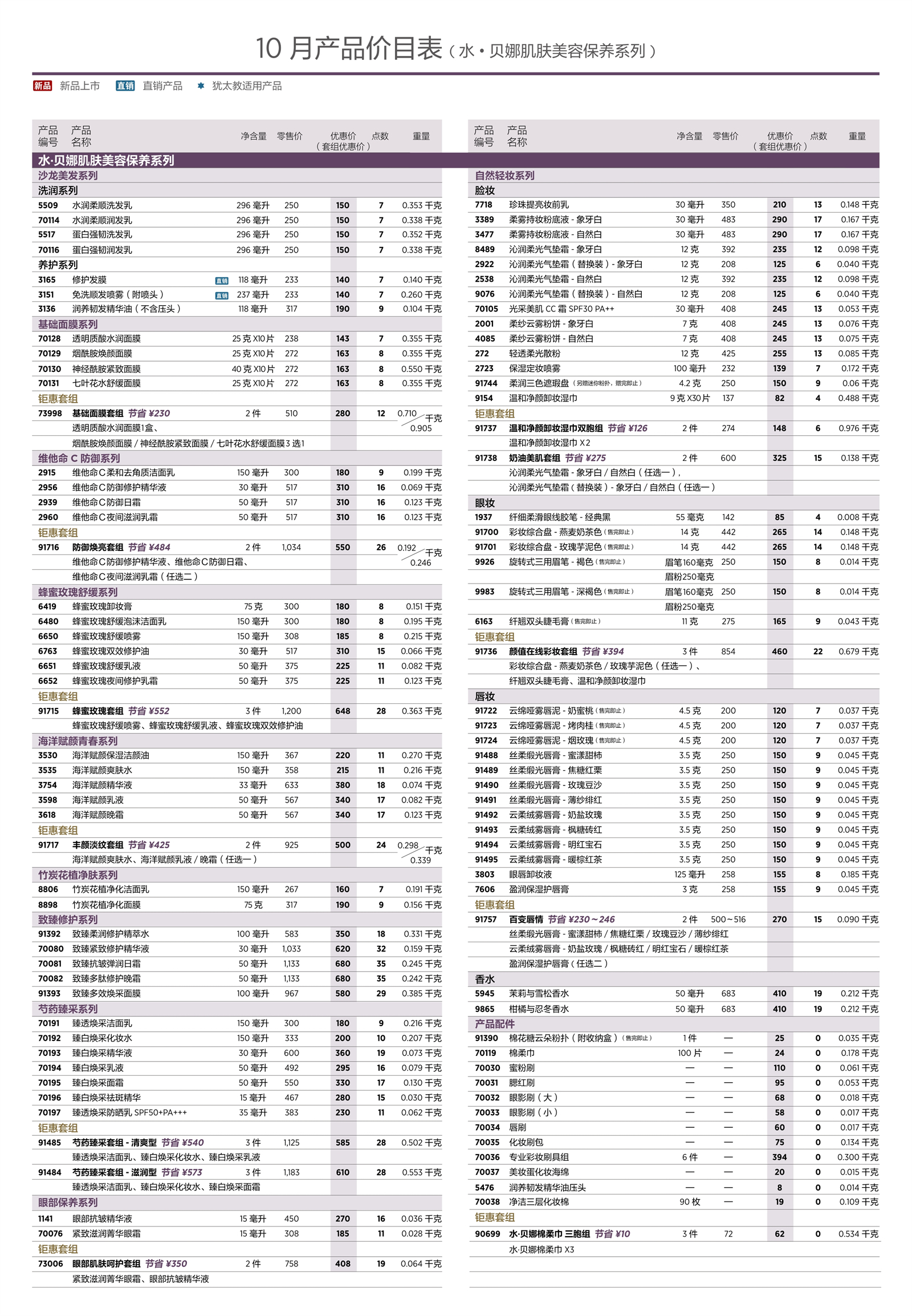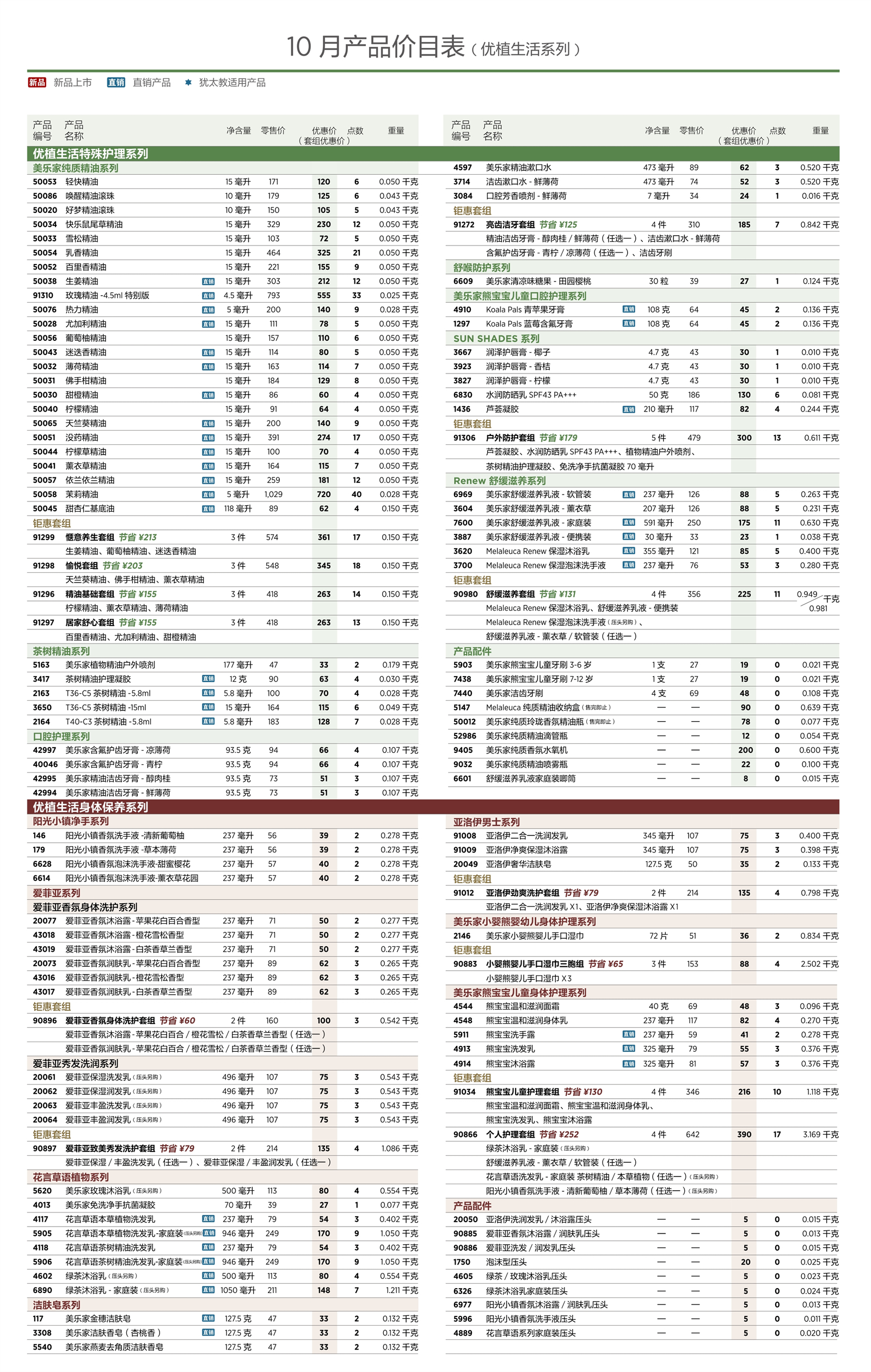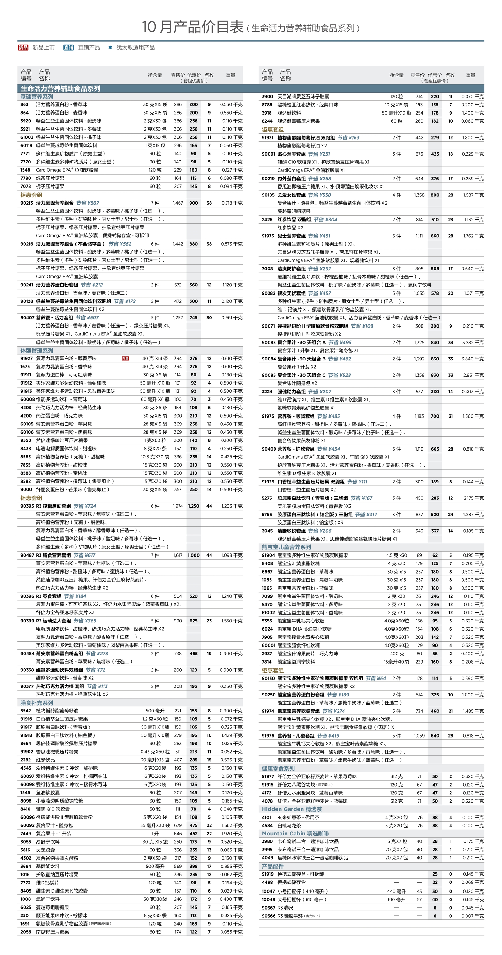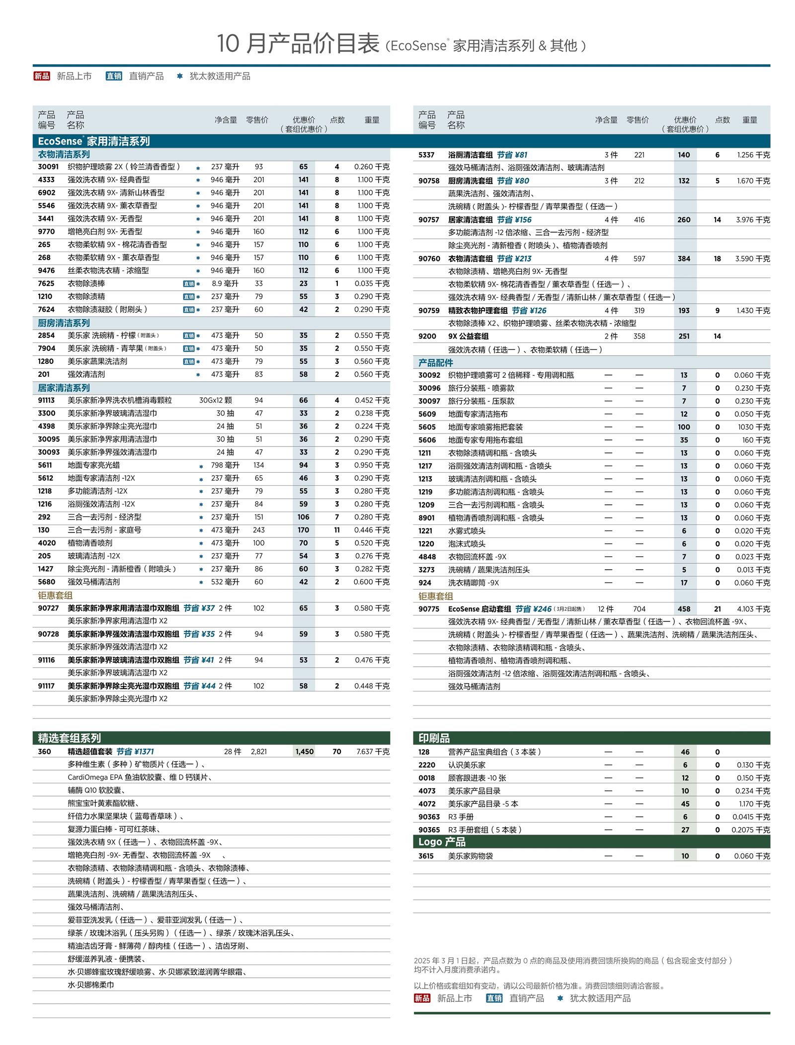 2025年10月美乐家产品价目表