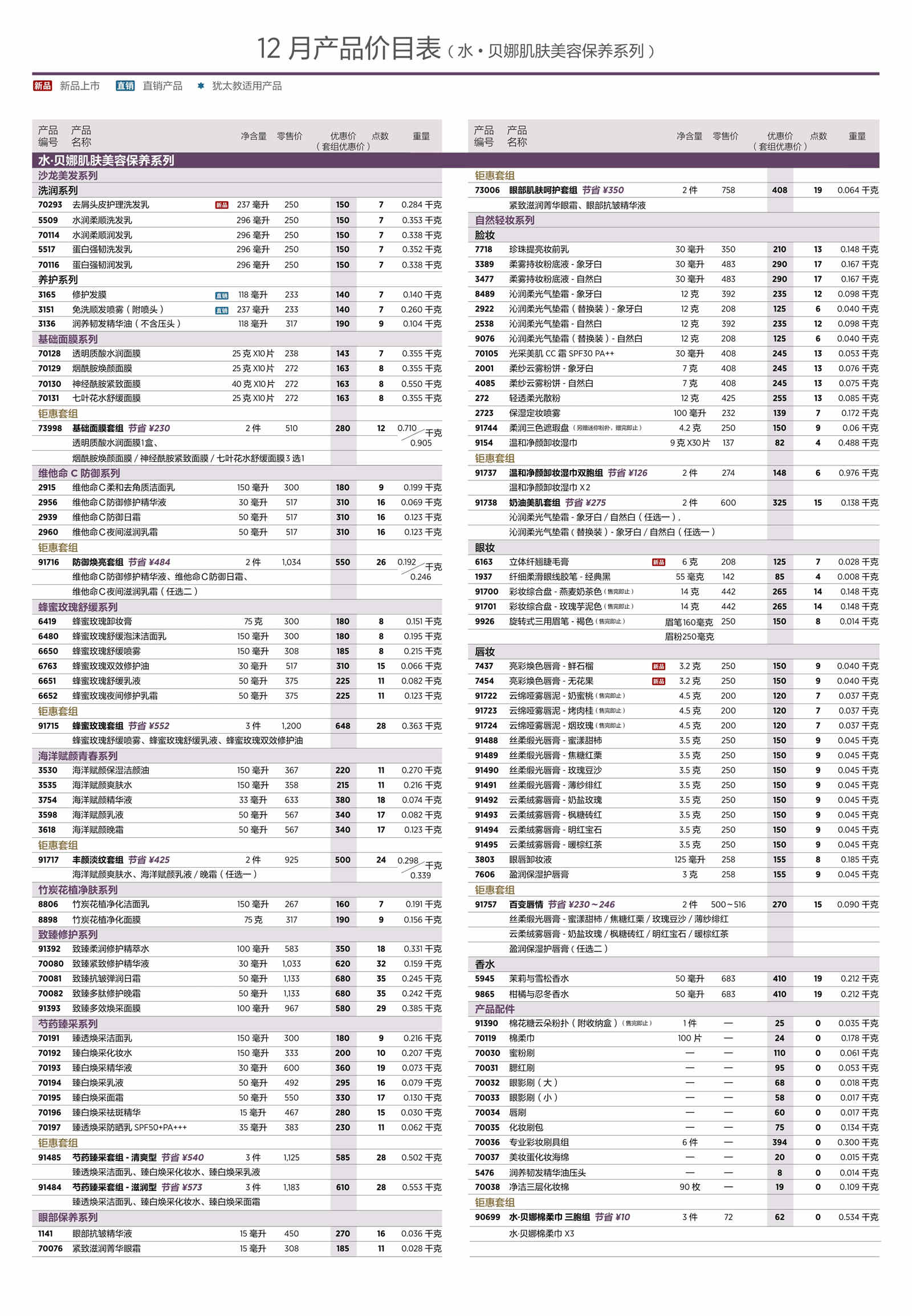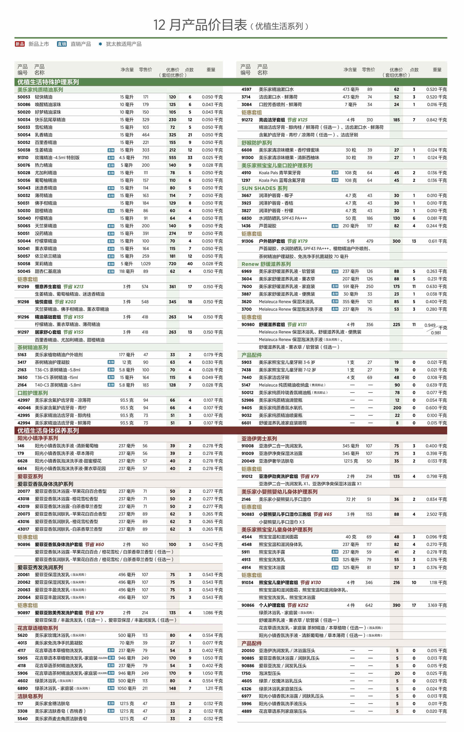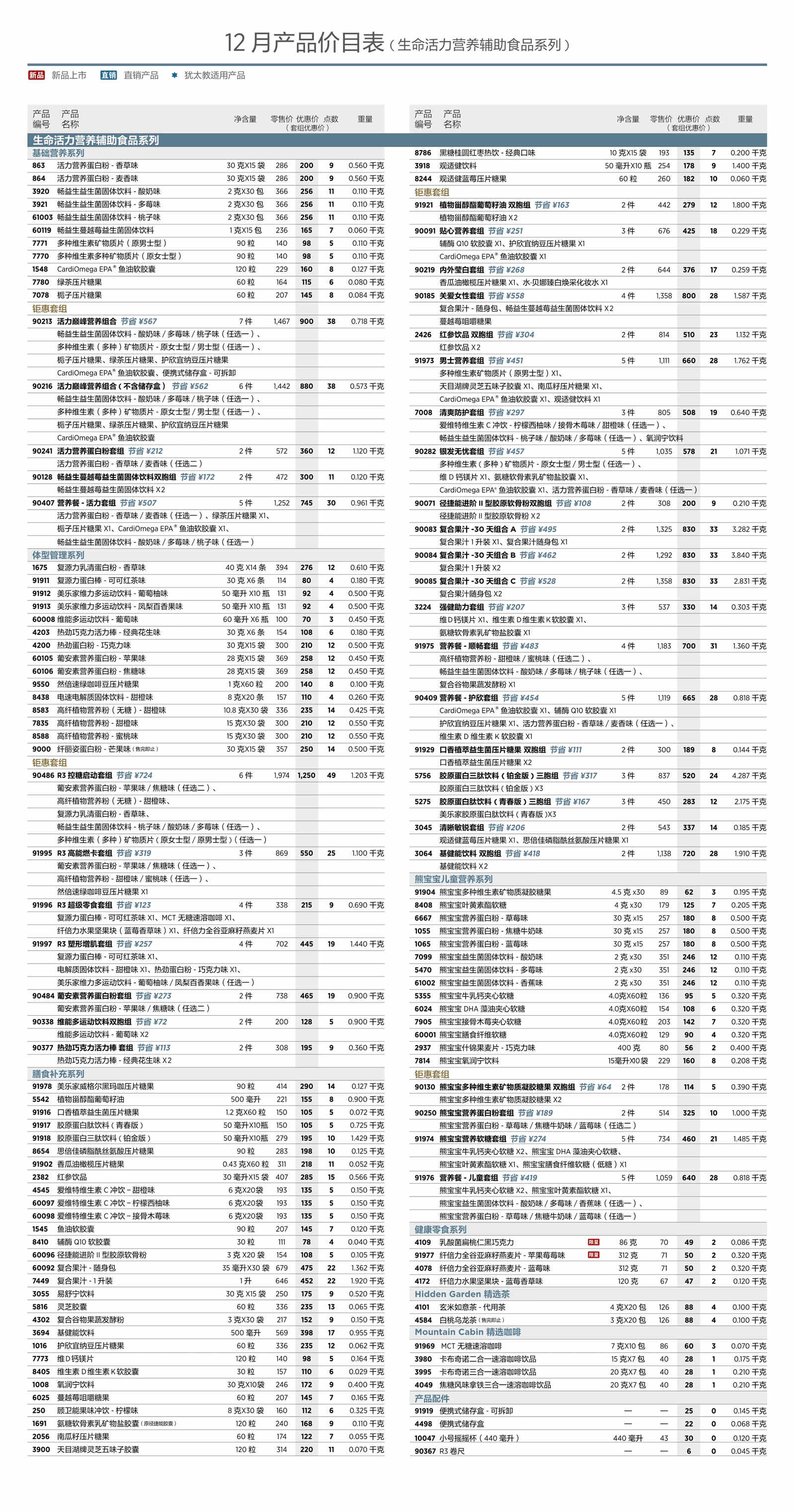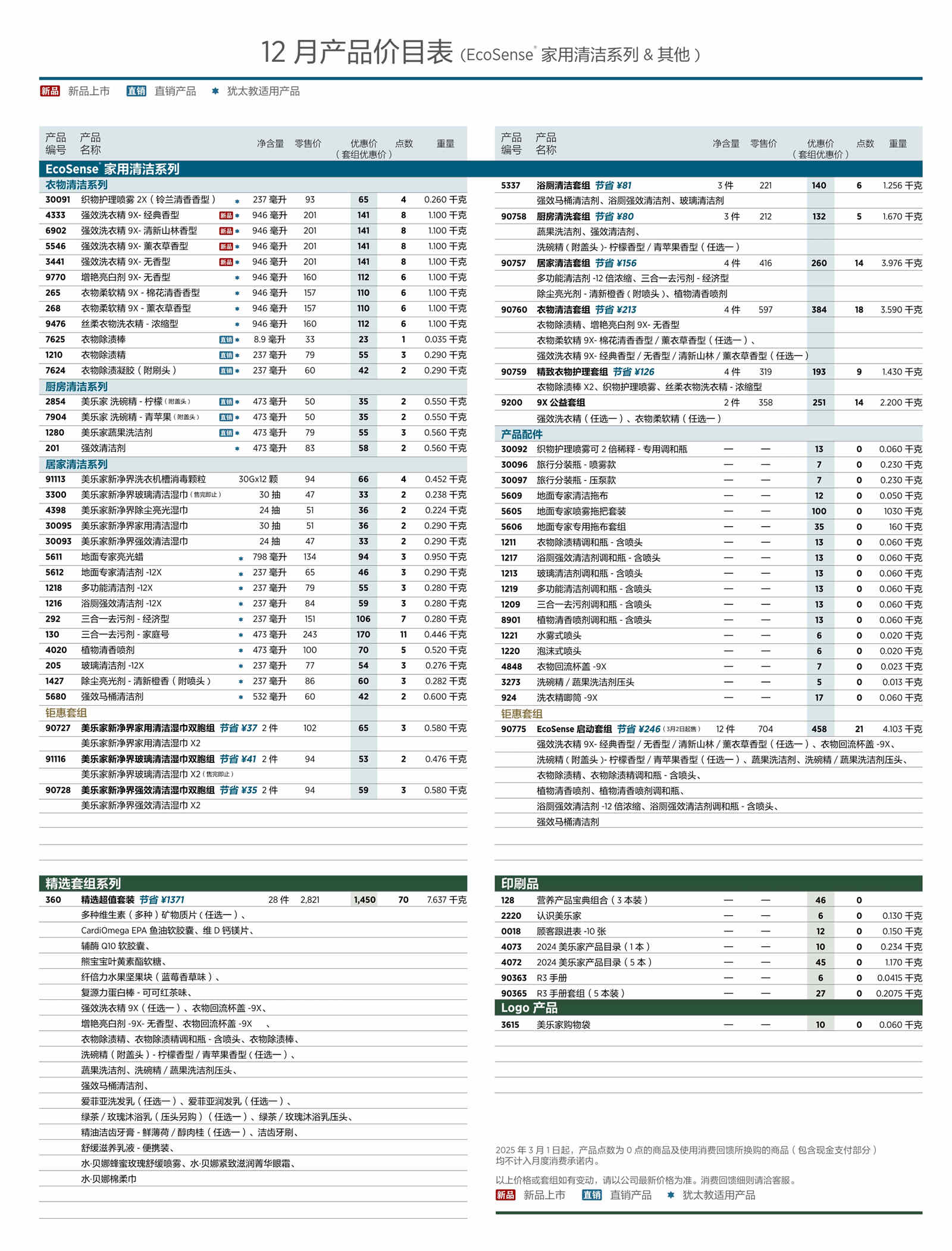 2025年12月美乐家产品价目表