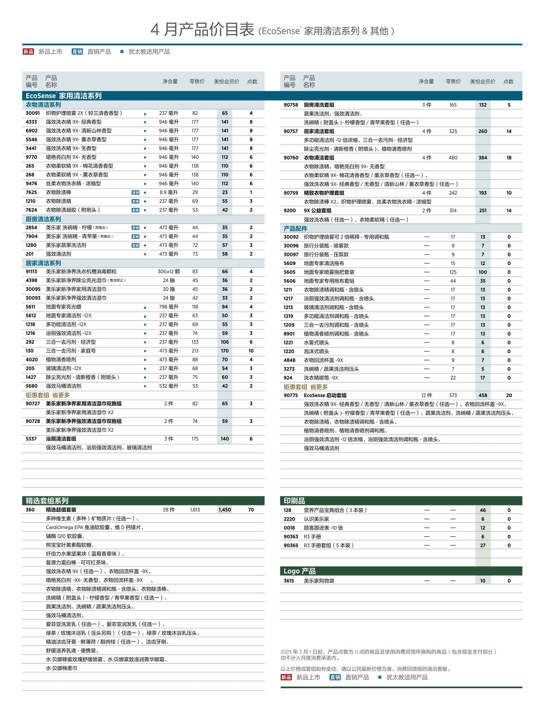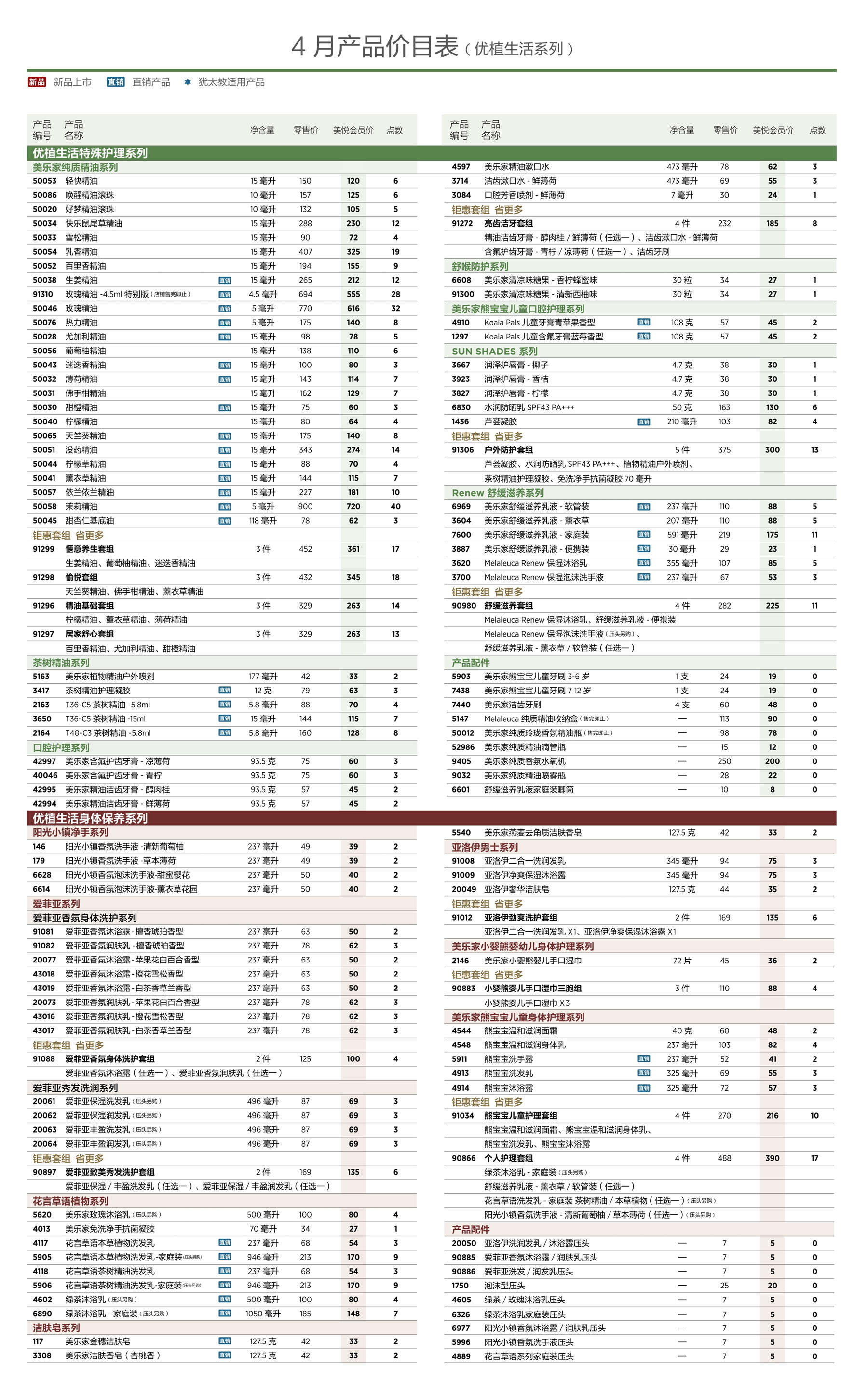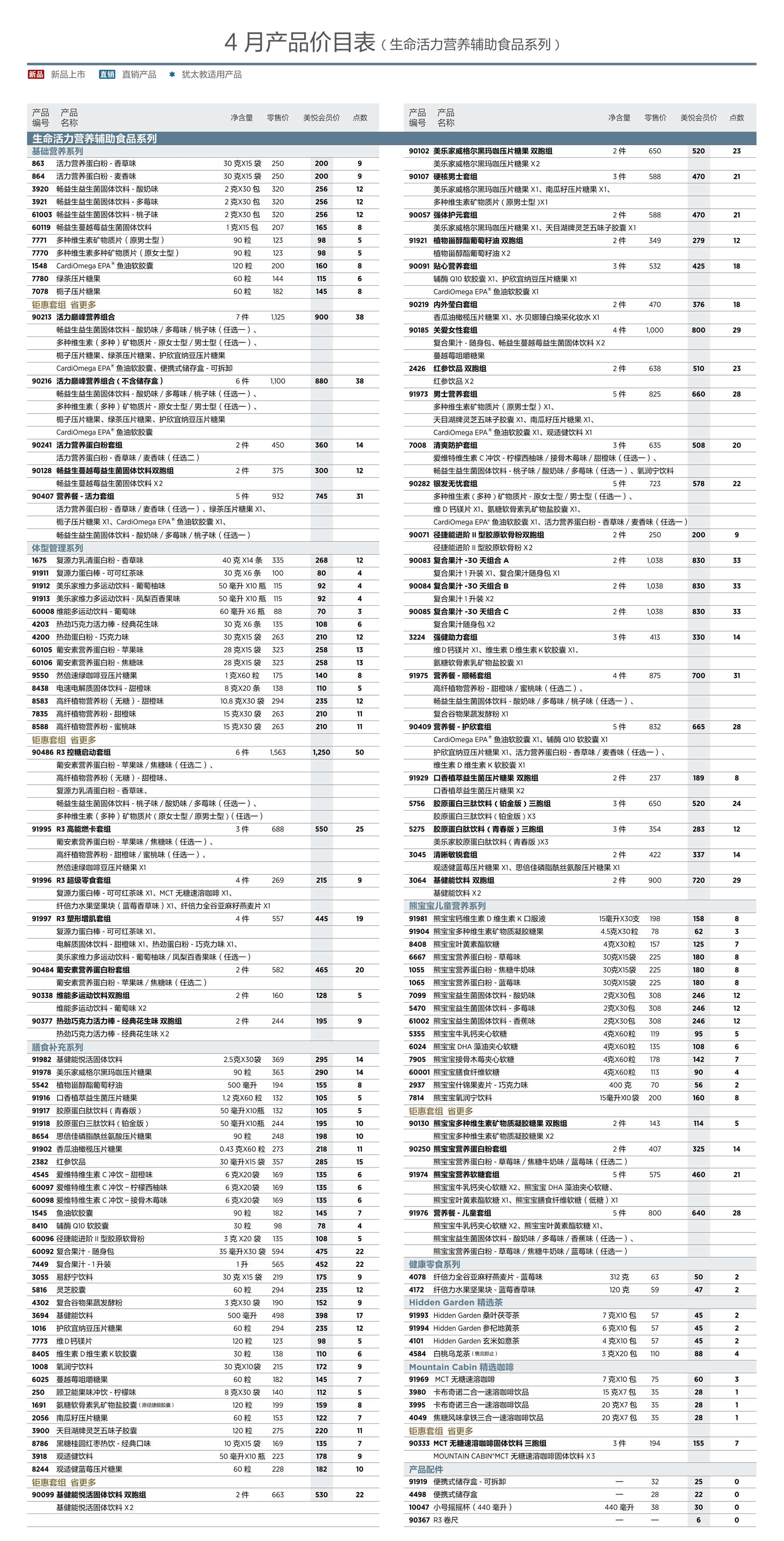 2026年4月美乐家产品价目表